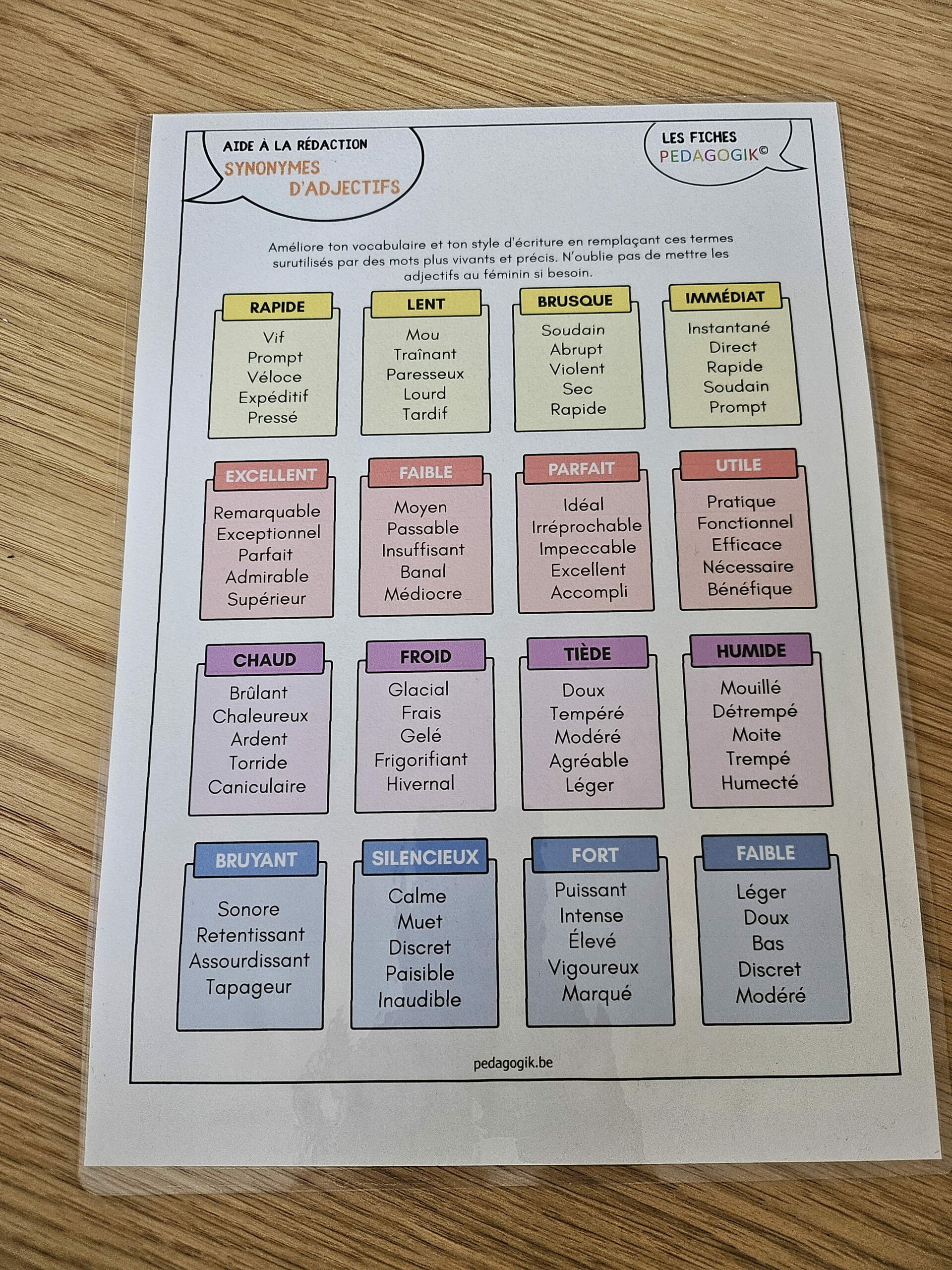 Feuille de synonymes : 32 adjectifs